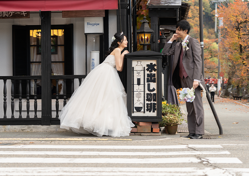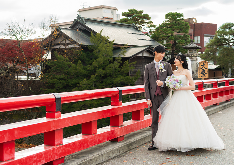 ウェディングレポート 2025.11.14. FRI Enjoy a walk in Takayama 高山の町を散歩するように撮影を楽しむ時間 高山の町並みや中橋、行きつけのレストランやカフェなど、思い出の場所を巡り NAGASE 館内では相棒(楽器)と撮影もおこない、終始おふたりらしさが溢れる、特別な1日となりました 日枝神社では紅葉が見頃を迎えており美しい秋の景色に包まれながら微笑み合うおふたりの笑顔が とても印象的でした |レポート一覧| 前の記事 WEDDING REPORT 2025.11.14. FRI A wedding full of love 高山の町を散歩するように撮影を楽しむ時間 詳細を見る 2025.10.12. SUN A wedding full of love 晴れ姿を見せたい大切な人がいる 詳細を見る 2025.09.26. FRI From a faraway land 日本の美しい風景で撮るフォトウェディング 詳細を見る 2025.09.07. SUN place of memories 思い出の地で撮るフォトウェディング 詳細を見る 2025.08.08. FRI A wedding to take photos 高山が感じられる風情あるロケーション撮影 詳細を見る 2025.07.26 SAT Giving back with gratitude 細やかな気配りでおもてなしする結婚式 詳細を見る 2025.07.18. FRI summer photo wedding 木漏れ日がさす美しい景色に囲まれて 詳細を見る ウェディングレポート